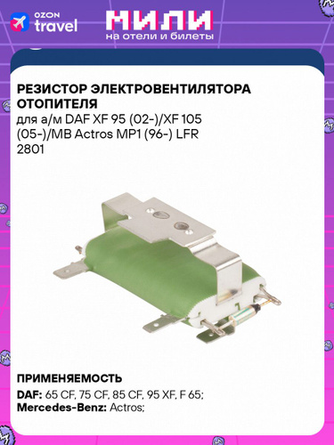 Резистор электровентилятора отопителя для а/м DAF XF 95 (02 )/XF 105 (05 )/MB Actros MP1 (96 ) LUZAR LFR 2801