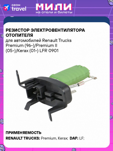 Резистор электровентилятора отопителя для автомобилей Renault Trucks Premium (96 )/Premium II (05 )/Kerax (01 ) LUZAR LFR 0901