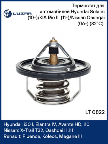 Термостат для автомобилей Hyundai Solaris 10 /KIA Rio III 11 /Nissan Qashqai 06 82 С термоэлемент LUZAR LT 0822