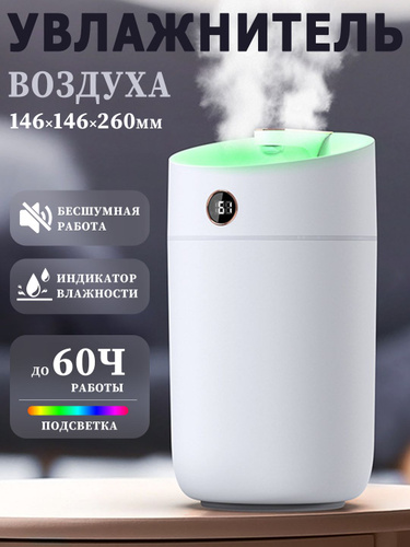 Увлажнитель воздуха для дома бесшумный с аромадиффузором и подсветкой , 3л ,Два выхода пара ,белый,14cm*26cm