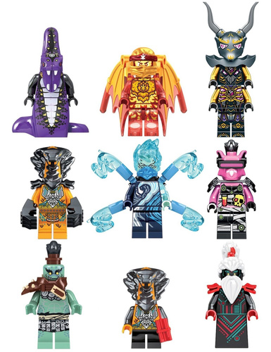 Набор минифигурок Ниндзяго Ниндзя Мастера кружитцу / Ninja совместимы с конструкторами лего 9шт (4.5см, пакет) RT8003-9B