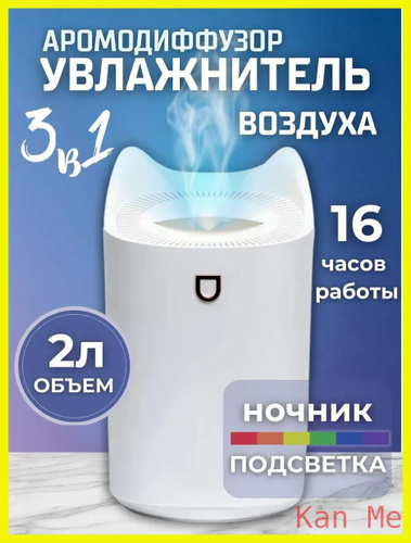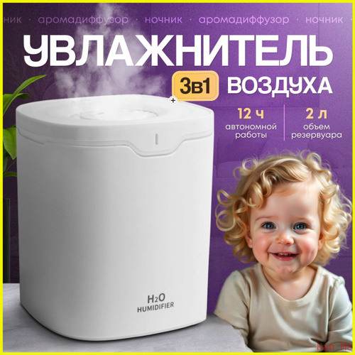 Увлажнитель воздуха Увлажнитель воздуха 2л для новорожденных, Ультразвуковой Увлажнитель воздуха для дома настольный с подсветкой, для цветов, большой аромадиффузор, белый, прозрачный