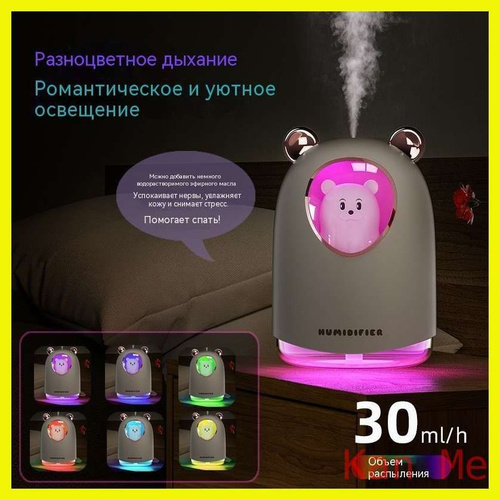 Увлажнитель воздуха мини с подсветкой, в комплекте с фильтром, для дома, для новорожденных, для автомобиля, для цветов-4c27b8e118dd, серый