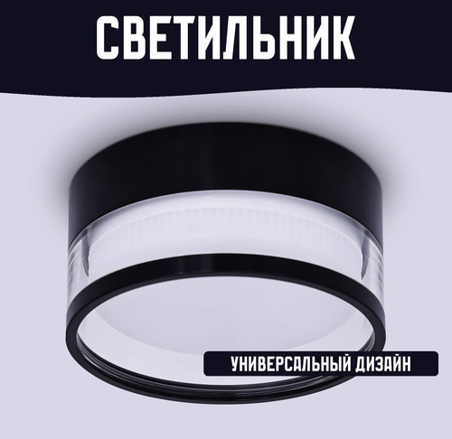 Светильник накладной цвет черный песок/прозрачный GX53 D85х43мм