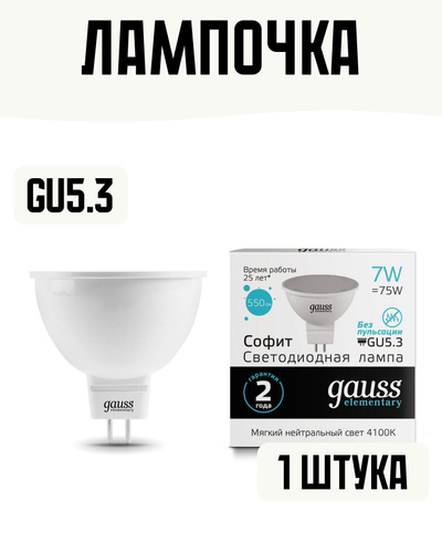 Лампа светодиодная 7Вт GU5.3 4100K свет холодный