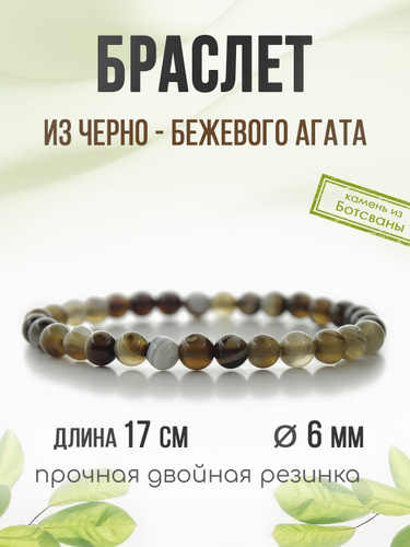 Браслет "Классика" 6мм, из натурального черного, бежевого и коричневого агата, на резинке