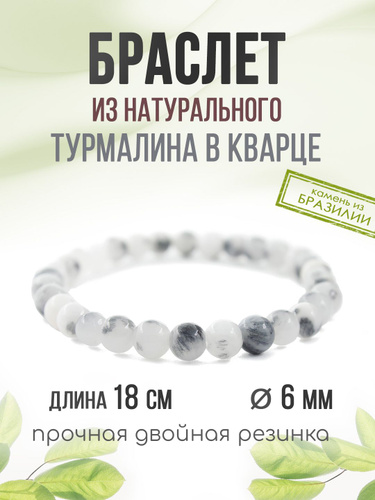 Браслет "Классика" 6мм, из натурального камня черный Турмалин в кварце, на резинке