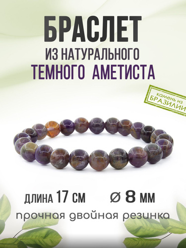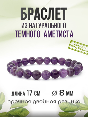 Аметист тёмный 8мм, браслет из натурального камня, на резинке