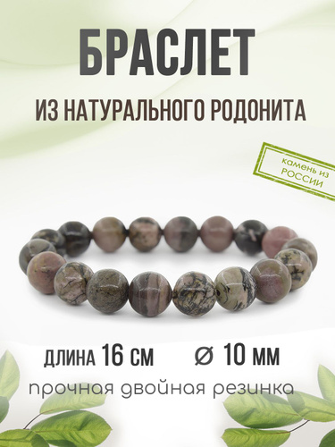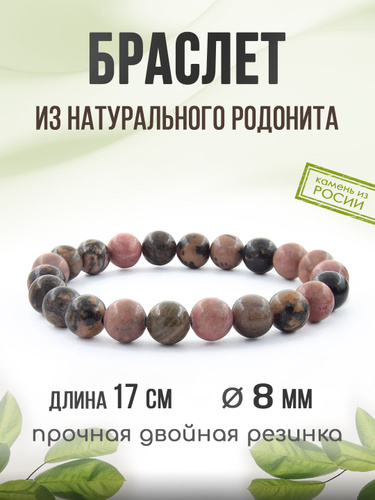 Родонит тёмный 8мм, браслет из натурального камня, на резинке