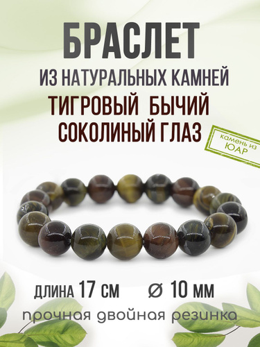 Браслет "Классика" 10мм, из натуральных камней mix Тигровый, Бычий и Соколиный Глаз, на резинке