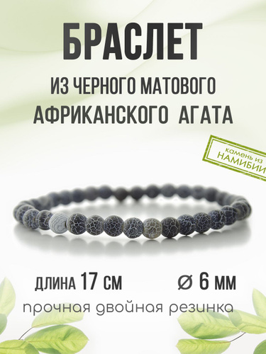 Агат африканский черный матовый 10мм, браслет "Классика"