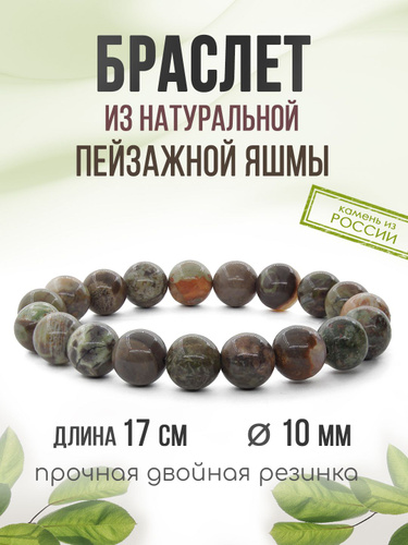 Браслет "Классика" 10мм, из натурального камня Пейзажная Яшма, на резинке