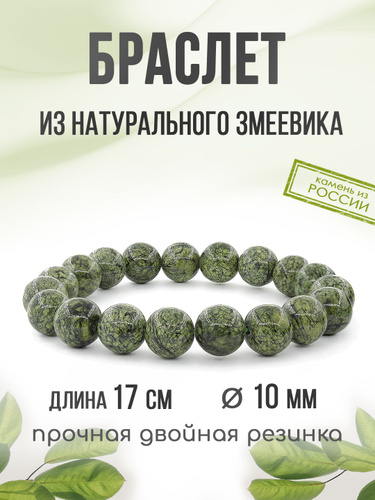 Браслет "Классика" 10мм, из натурального камня Змеевик (Серпентин) светлый, на резинке