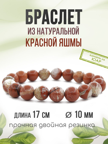 Браслет "Классика" 10мм, из натурального камня Красная Яшма, на резинке