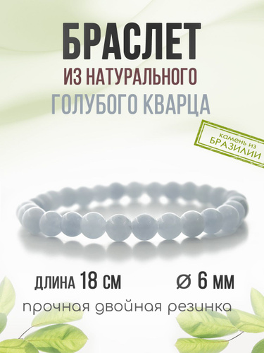 Браслет "Классика" 6мм, из натурального камня голубой Кварц, на резинке
