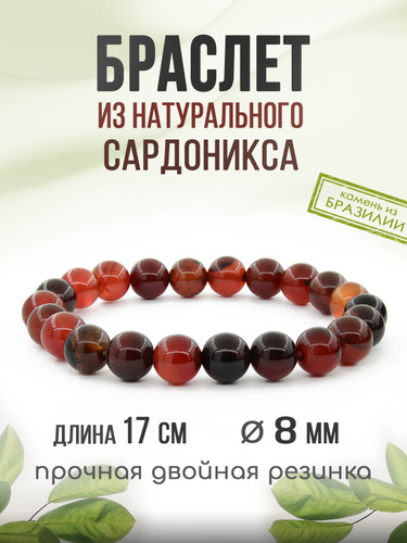 Сардоникс 8мм, браслет из натурального камня, на резинке