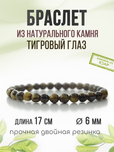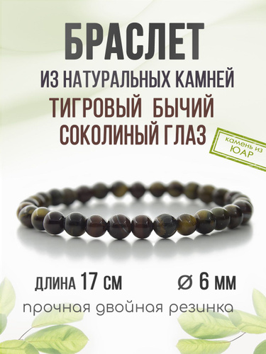 Браслет "Классика" 6мм, из натуральных камней Тигровый, Бычий и Соколиный Глаз, на резинке