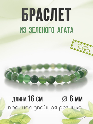 Браслет "Классика" 6мм, из натурального изумрудно-зелёного агата, на резинке