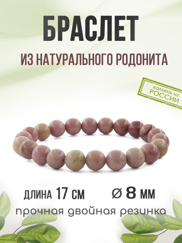 Родонит розовый 8мм, браслет из натурального камня, на резинке