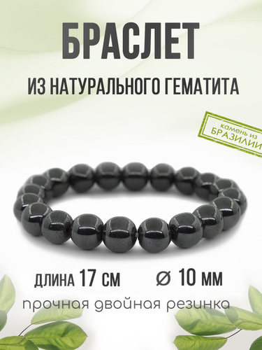 Браслет "Классика" 10мм, из натурального камня Гематит, на резинке