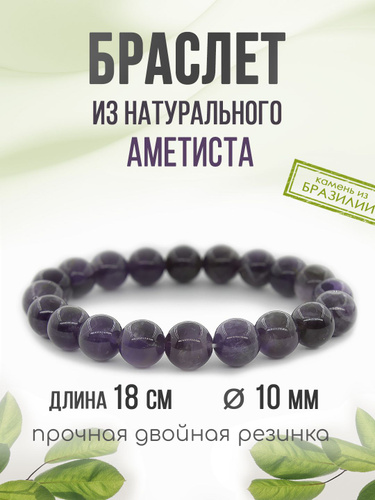 Браслет "Классика" 10мм, из натурального камня Аметист, на резинке