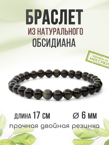 Обсидиан чёрный 6мм, браслет из натурального камня, на резинке