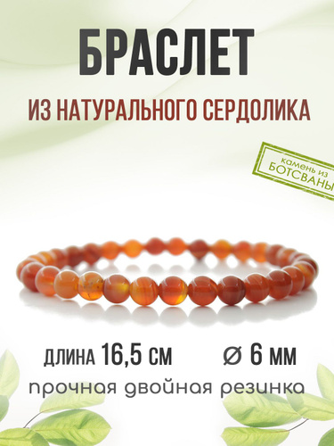 Браслет "Классика" 6мм, из натурального камня Сердолик, на резинке