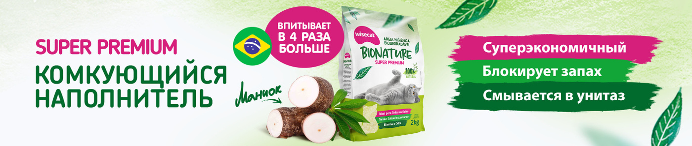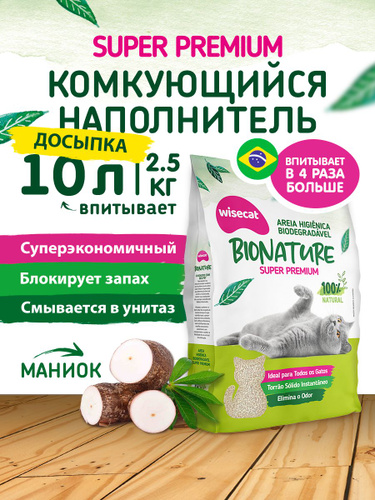 Наполнитель для кошачьего туалета Wisecat Bionature Super Premium комкующийся из маниока, Бразилия, 10 кг