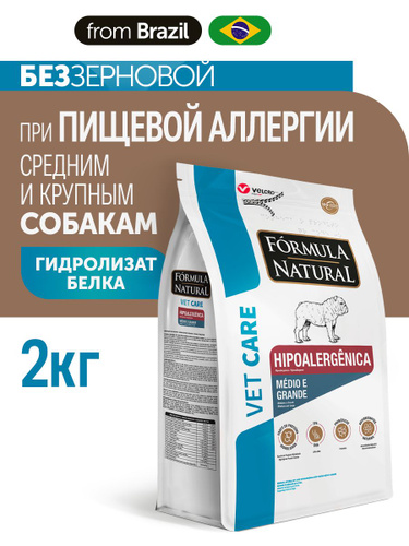 Сухой корм для собак Formula Natural VET CARE HIPOALERGENIC для средних и крупных пород, лечебный диетический, при пищевой аллергии (гипоаллергеник), Бразилия, 2 кг