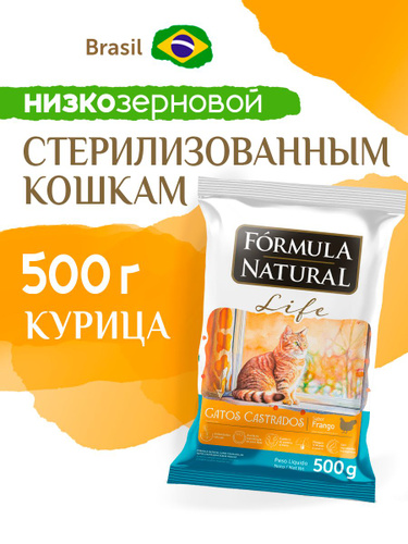 Сухой корм для кошек стерилизованных Formula Natural Life с курицей, Бразилия, 500 гр