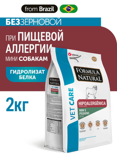 Сухой корм для собак Formula Natural VET CARE HIPOALERGENIC для мелких пород, лечебный диетический, при пищевой аллергии (гипоаллергеник), Бразилия, 2 кг