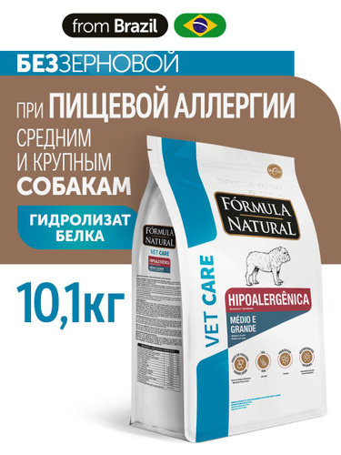 Сухой корм для собак Formula Natural VET CARE HIPOALERGENIC для средних и крупных пород, лечебный диетический, при пищевой аллергии (гипоаллергеник), Бразилия, 10,1 кг