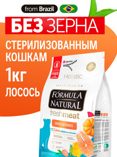 Сухой корм для кошек стерилизованных Formula Natural Fresh Meat беззерновой, с лососем, тыквой и куркумой, Бразилия, 1 кг