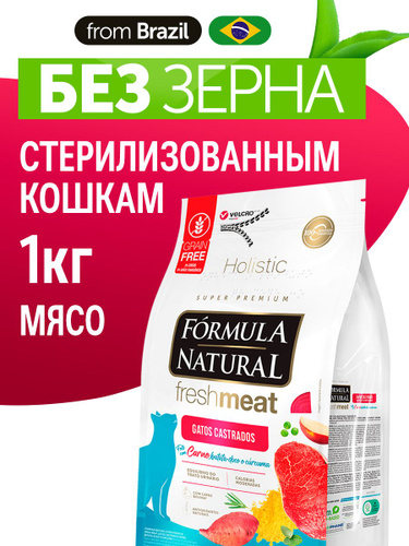 Сухой корм для кошек стерилизованных Formula Natural Fresh Meat беззерновой, с мясом, бататом и куркумой, Бразилия, 1 кг