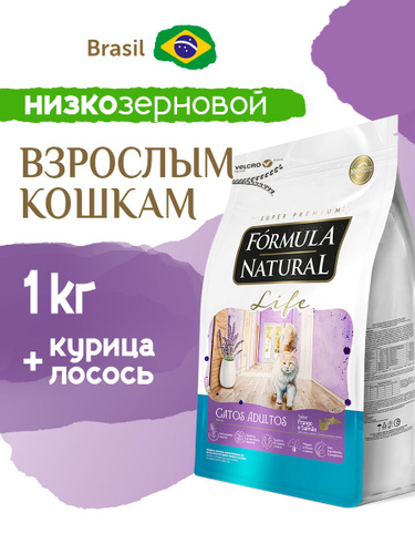 Сухой корм для взрослых кошек Formula Natural Life с курицей и лососем, Бразилия, 1 кг