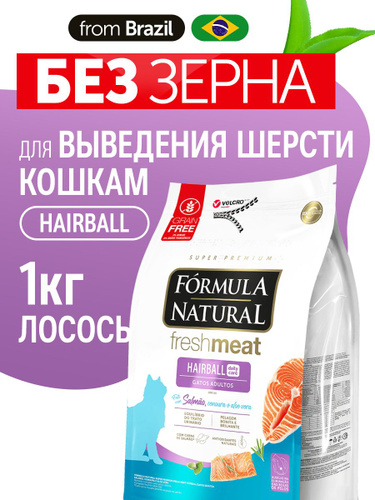 Сухой корм для кошек взрослых Formula Natural Fresh Meat Hairball для выведения шерсти, беззерновой, с лососем, морковью и алоэ вера, Бразилия, 1 кг