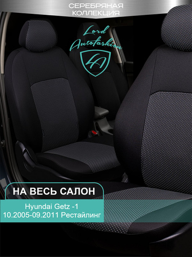 Чехлы на сиденья Хондай Гетз ТБ Лорд Авто 5 мест с 2005 - 2011 Хетчбек / Hyundai Getz ТВ , на весь салон ( спинка заднего сидения 40/60 раздельная ), ткань жаккард черные Дублин