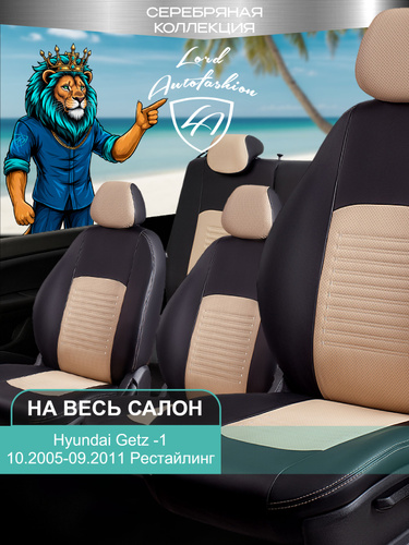 Чехлы на сиденья Хондай Гетз ТБ Лорд Авто 5 мест с 2005 - 2011 Хетчбек / Hyundai Getz ТВ , на весь салон ( спинка заднего сидения 40/60 раздельная ), экокожа черные бежевые Турин СТ