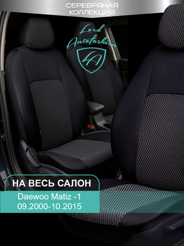 Чехлы на сиденья Дэу Матиз М150 Лорд Авто 5 мест с 2000 - 2015 / Авточехлы Daewoo Matiz М150 на весь салон ( спинка заднего сидения цельная ), ткань жаккард черные Дублин