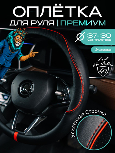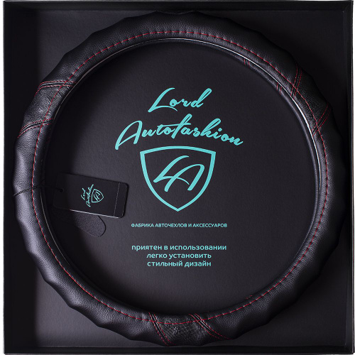 Оплетка на руль каркасная Кожа микрофибра ВС Lord Autofashion (9296 Чёрный/Красная строчка М)