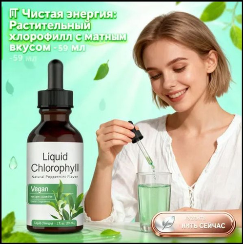 Жидкий хлорофилл с мятным вкусом, 50 мг из листьев шелковицы, поддержка детокса, иммунитета и здоровья кожи, 59 мл CO1614