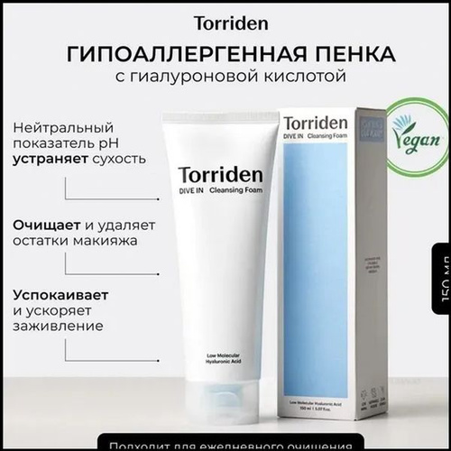 Torriden Гипоаллергенная пенка для умывания Torriden DIVE IN Low Molecular Hyaluronic Acid Cleansing Foam