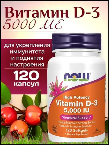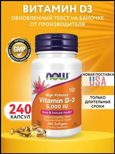 Витамин Д 3 5000 ME 240 капсул Now / now витамин d3 5000