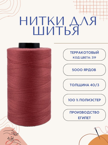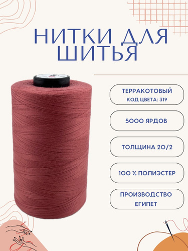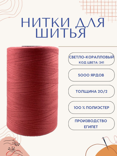 Нитки для шитья 20/2, 5000 ярдов, коралловые