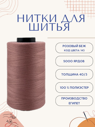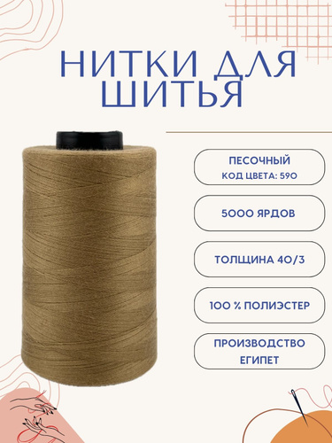 Нитки для шитья 40/3, 5000 ярдов, бежевые