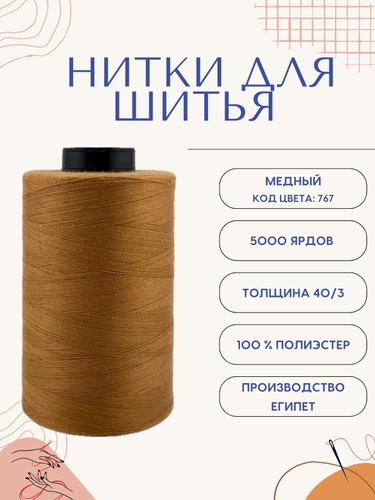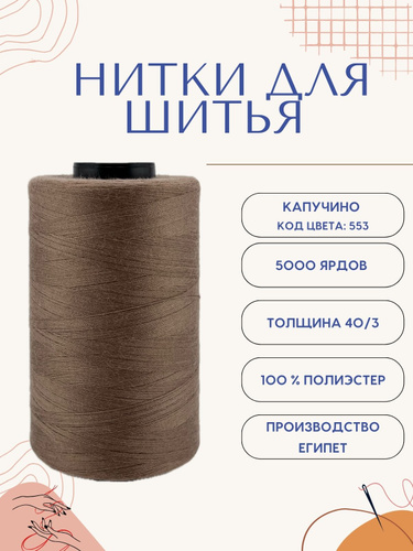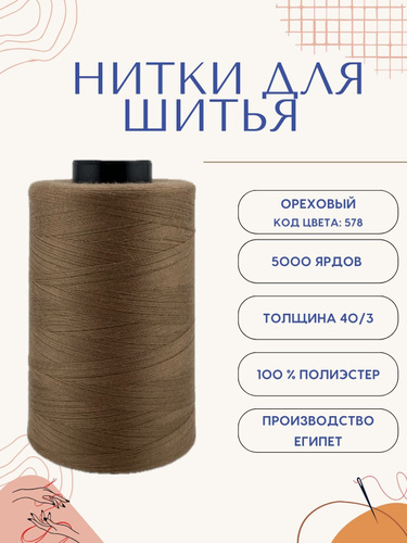 Нитки для шитья 40/3, 5000 ярдов, коричневые
