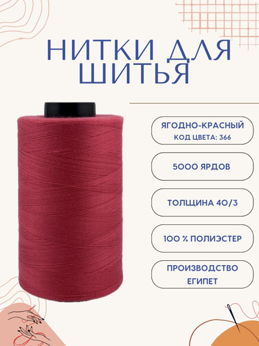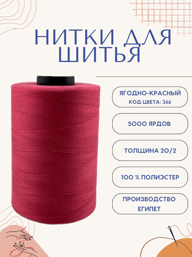 Нитки для шитья 20/2, 5000 ярдов, ягодно-красные