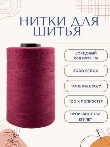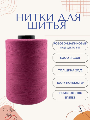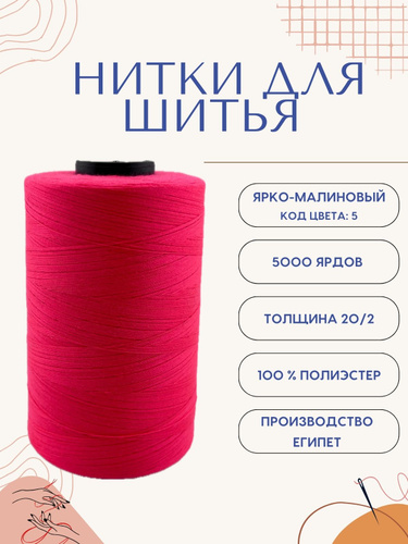 Нитки для шитья 20/2, 5000 ярдов, малиновые
