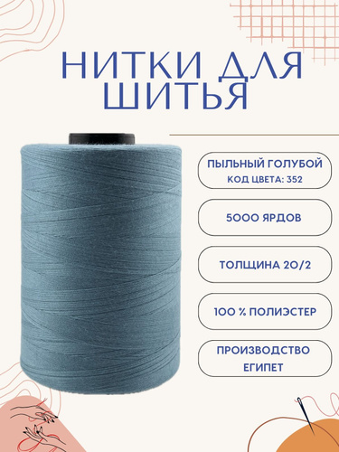 Нитки для шитья 20/2, 5000 ярдов, голубые