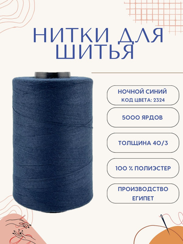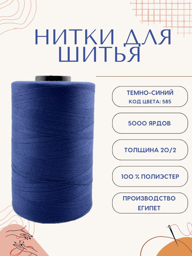 Нитки для шитья 20/2, 5000 ярдов, темно-синие